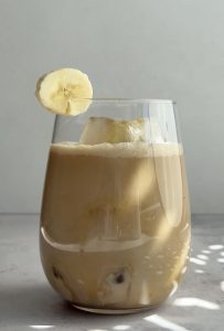 Na ochutenie môžeme pridať karamelový sirup (recept nájdeš u mňa na blogu). Ozdob plátkom banánu a podávaj.