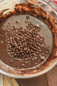 Primiešame čokoládové kúsky.