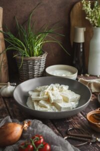 Kyslú smotanu zmiešame s bryndzou a dochutíme soľou a korením.