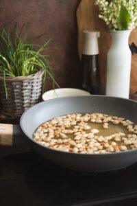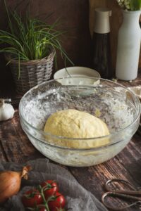 K preosiatej múke pridáme vajce, olej, soľ, uvarený a nastrúhaný zemiak a kvások. Vypracujeme cesto (ak sa príliš lepí, prisypeme múku). Prikryjeme a necháme ho vykysnúť približne jednu hodinu na teplom mieste.