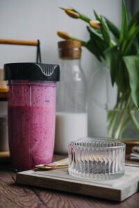 Jogurt, mrazené ovocie, banán, mlieko a med dáme do mixéra a rozmixujeme.