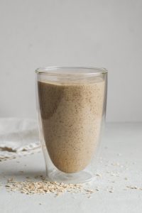Smoothie prirodzene zhustne vďaka chia semienkam a ovseným vločkám. Ak preferujete redšiu konzistenciu, pridajte viac mlieka.
