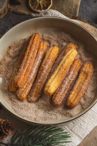 Klasická verzia:Ešte teplé churros obalíme v škoricovom cukre.Vianočná verzia:Churros obalíme v perníkovom cukre – získajú krásnu perníkovú vôňu. Churros podávame ešte teplé, obalené v škoricovom alebo perníkovom cukre a namáčame ich do čokoládovej ganache. Výborne chutia aj s karamelom alebo so sviežou ovocnou omáčkou.