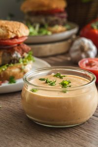 Tento domáci dip do burgru je presne to, čo váš burger potrebuje, aby sa z neho stal gurmánsky zážitok. Kombinuje v sebe krémovosť majonézy a smotany, štipku kyslosti z horčice a octu, jemnú sladkosť medu a výraznosť opečenej cibule s cesnakom. Príprava je jednoduchá – cibuľu a cesnak len krátko orestujeme, následne všetko spolu rozmixujeme do hladkého krému a necháme chvíľu odležať. Výsledkom je dokonale vyvážený dip, ktorý sa hodí nielen do burgrov, ale aj k pečeným zemiakom, hranolkám alebo ako základ do wrapov a sendvičov.