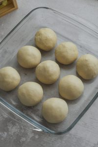 Cesto rozdelíme na 10 guľôčok po cca 50 g, jemne ich potrieme olejom a necháme odpočívať 20–30 minút zakryté fóliou