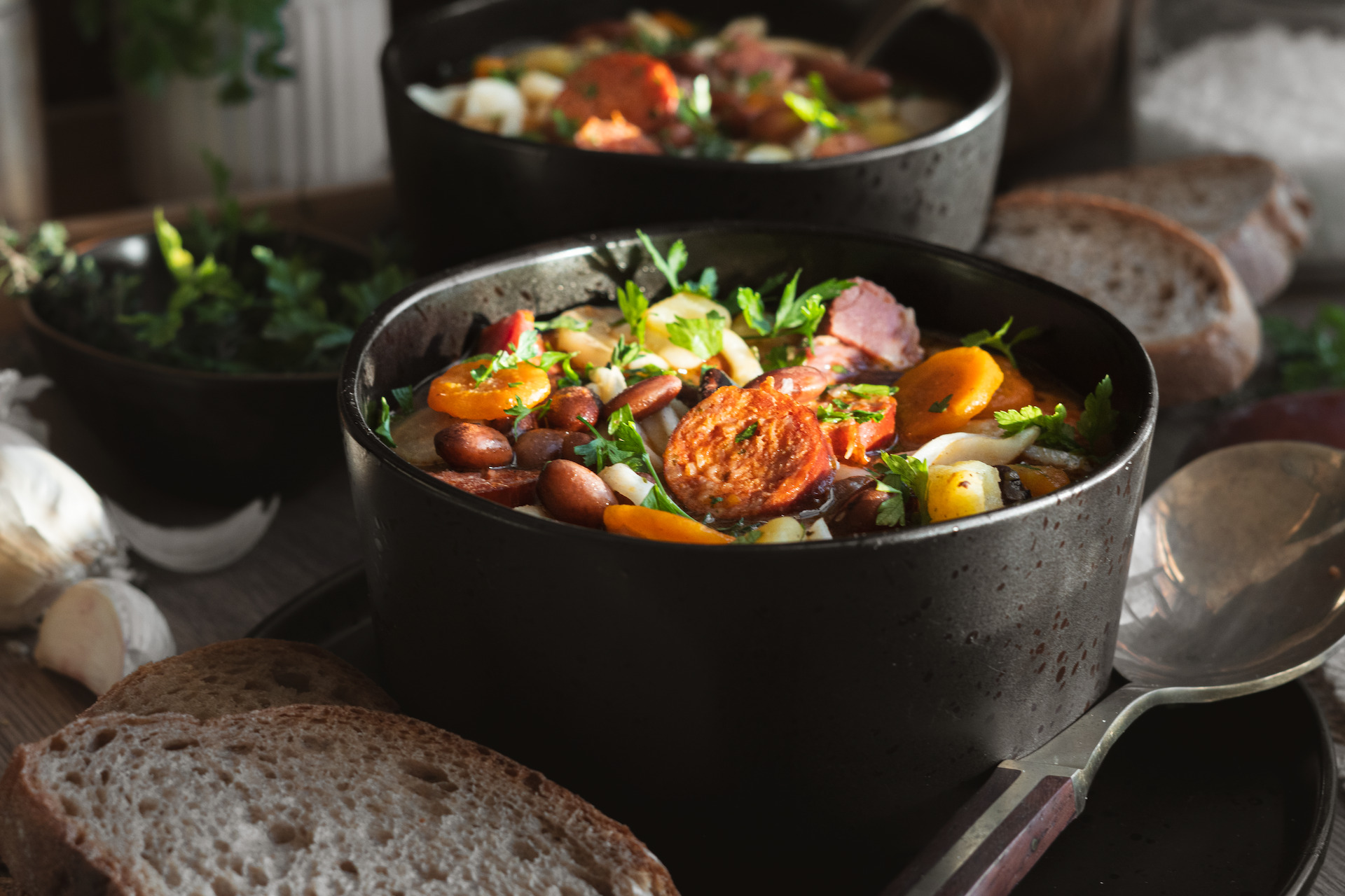 Keď je fazuľa mäkká, vyberieme klobásu, zeler a ligurček.