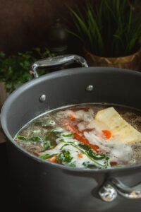 Polievku servírujeme s domácimi rezancami dozdobenú petržlenovou vňaťou.