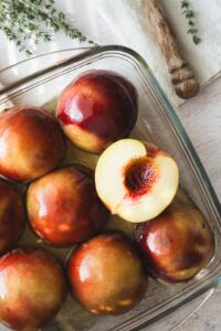 Broskyne prekrojíme na polovicu a odstránime kôstku.