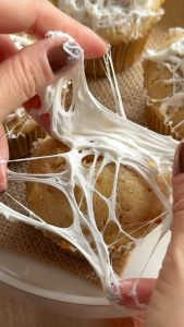 Potom ich prstami alebo vidličkou natiahneme na dezert a vytvoríme jemnú pavučinu.