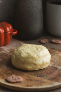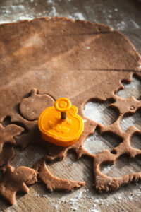 Kakaové cesto rozvaľkáme na pomúčenej doske a vykrojíme požadované tvary.