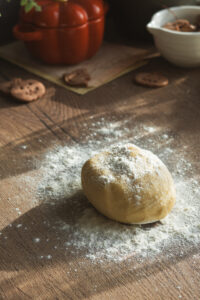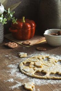 Maslové cesto rozvaľkáme na pomúčenej doske a vykrojíme požadované tvary.