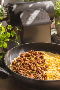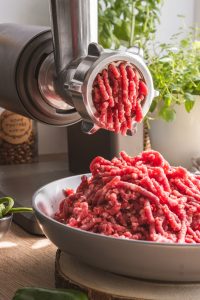 Mäso nakrájame na menšie kúsky a pomelieme vo všestrannom mlynčeku Catler FG 403 Food+.