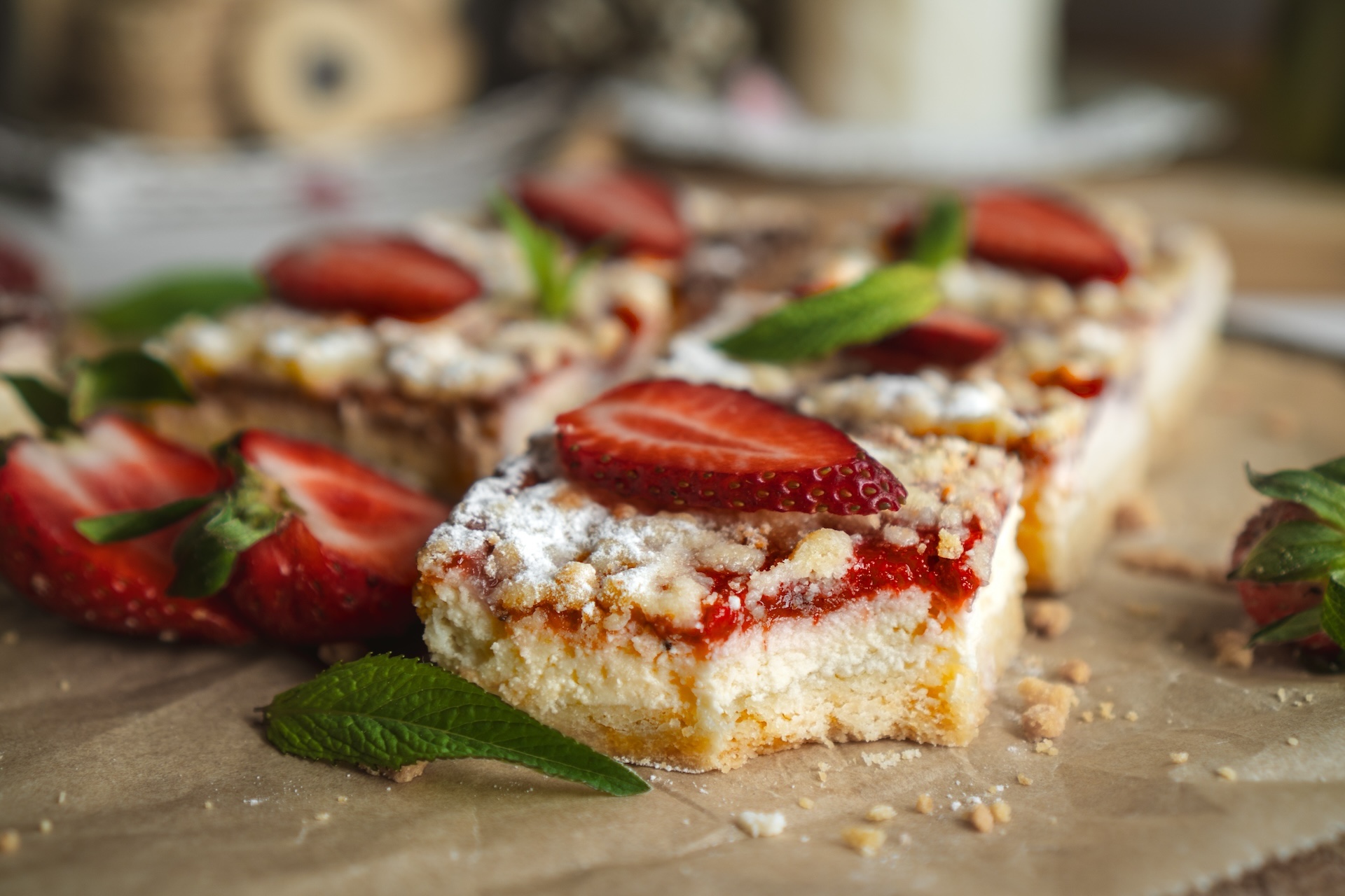 Ozdobíme ho mätou a čerstvými jahodami.