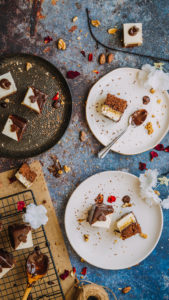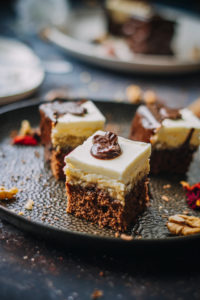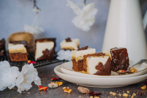 Koláč vyberieme z chladničky a nakrájame na štvorčeky. Namočíme do čokolády a podávame.
