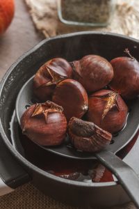 Každý gaštan na oblej strane narežeme ostrým nožom do tvaru X.