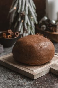 Do múky pridáme nakrájané maslo, žĺtky, cukor, pomleté orechy, holandské kakao, škoricu a mleté klinčeky. Vypracujeme cesto a necháme ho odpočinúť v chladničke asi 1 hodinu.