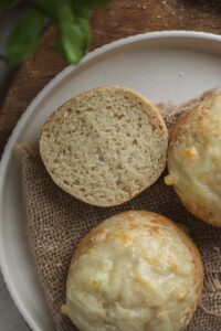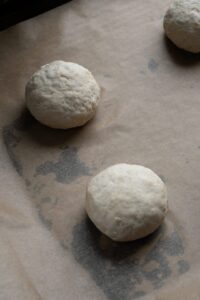 Cesto rozdelíme na 4 rovnaké časti (cca 95–100 g/kus) a vytvarujeme bochníčky. Uložíme ich na plech vystlaný papierom na pečenie.