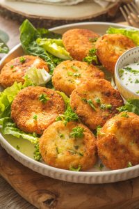 Namočenými rukami formujeme nugetky.