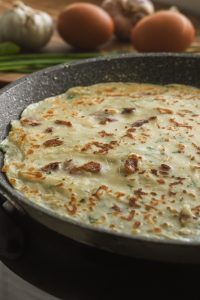 Vymiešame hladké cesto. Na vymastenej panvici opekáme palacinky z oboch strán dozlatista.