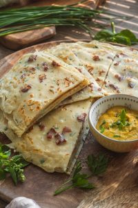 Podávame s kyslou smotanou alebo ako prílohu k polievke. Môžeme ich potrieť smotanou, pridať šunku, rukolu a zrolovať.