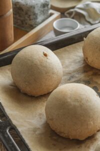 Rúru predhrejeme na 190 °C. Žemličky alebo rožky predpečieme 16-17 minút len do svetlej farby. Spodok sa môže jemne chytiť do zlatista – nevadí to.