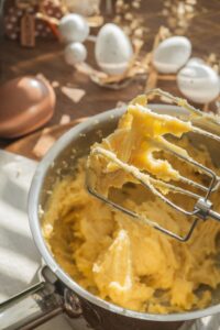 Do vlažného cesta postupne zašľaháme vajcia – jedno po druhom. Vznikne hladké, lesklé a mierne ťahavé cesto.