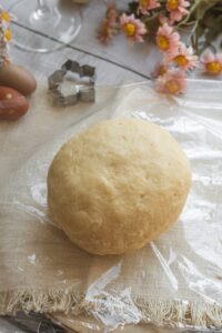Vypracujeme hladké cesto, ktoré zabalíme do potravinovej fólie a necháme odpočívať v chladničke približne 3 hodiny.