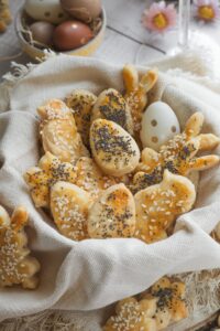Koláčiky preložíme na plech vystlaný papierom na pečenie, potrieme rozšľahaným vajíčkom a posypeme makom a hrubozrnnou soľou.