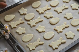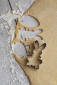Vykrajujeme veľkonočné tvary – vajíčka, zajačiky alebo kvietky.
