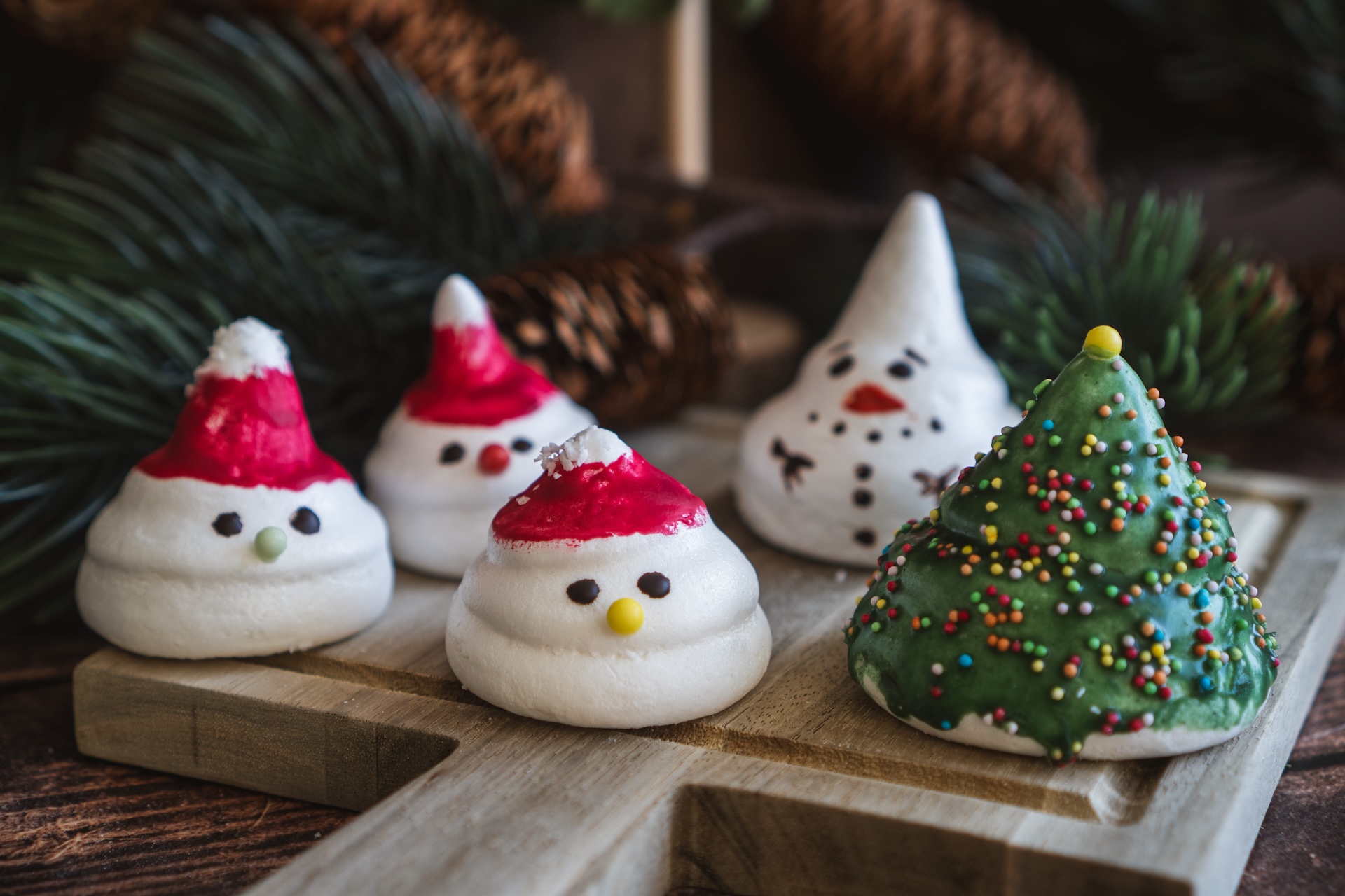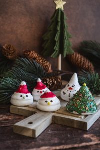 Čokoládu roztopíme a zafarbíme pomocou potravinárskeho farbiva. Môžeme si vytvoriť stromčeky, snehuliakov, Mikulášov alebo ich obsypať kokosom a ozdobiť rôznymi vianočnými ozdobami.