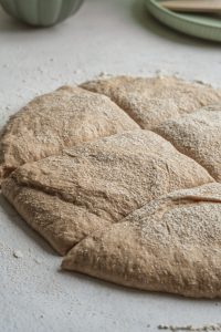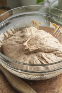 Po 30 minútach cesto premiesime, tak, že ho ho ťaháme zvonka do stredu a opäť zakryjeme a necháme ešte 30 minút kysnúť.