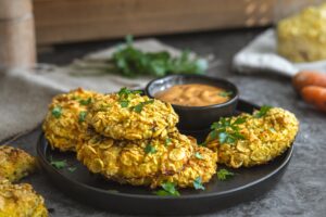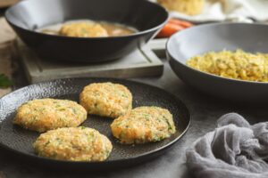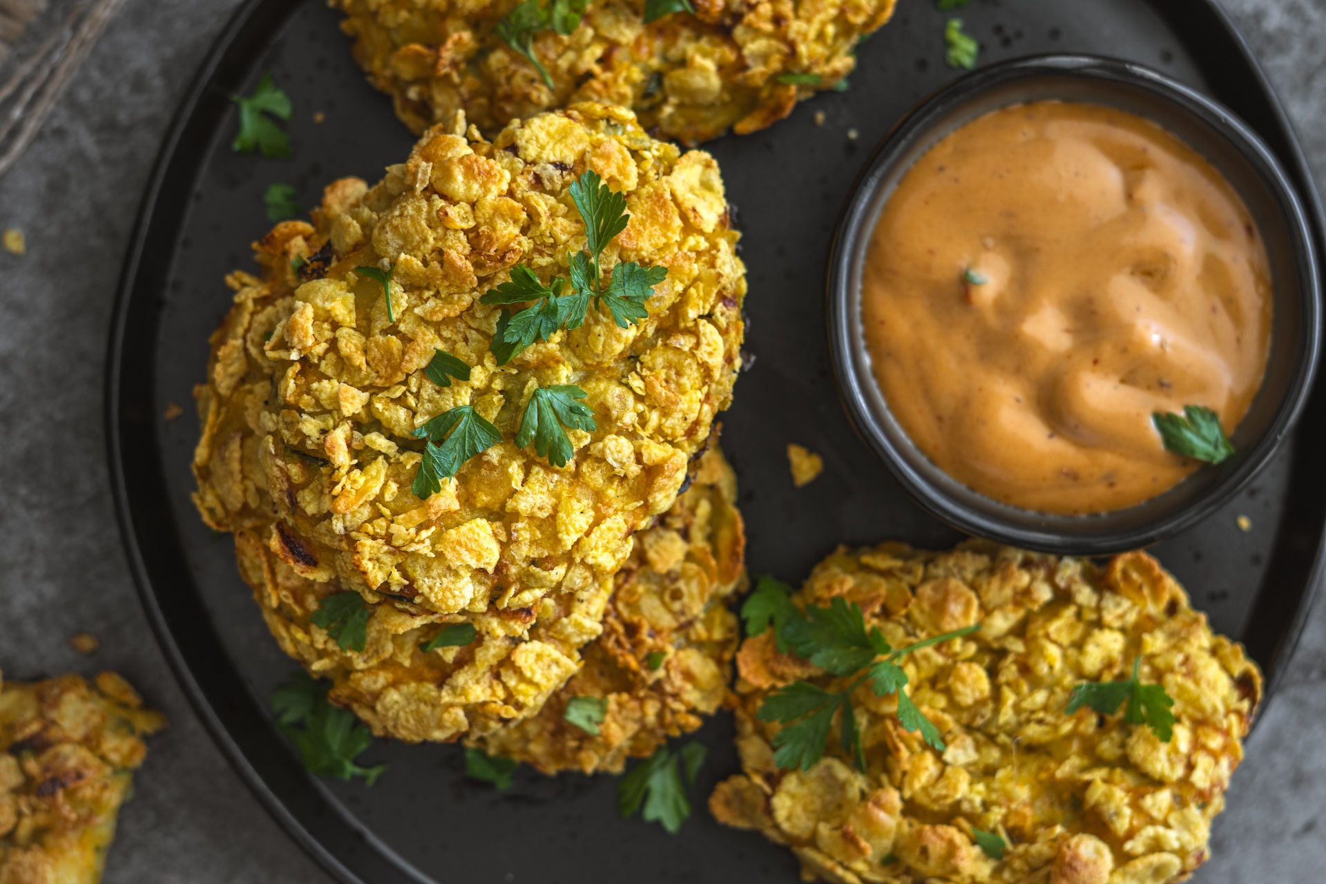 Obalíme ich v rozšľahanom osolenom vajíčku a rozdrvených kukuričných lupienkoch.